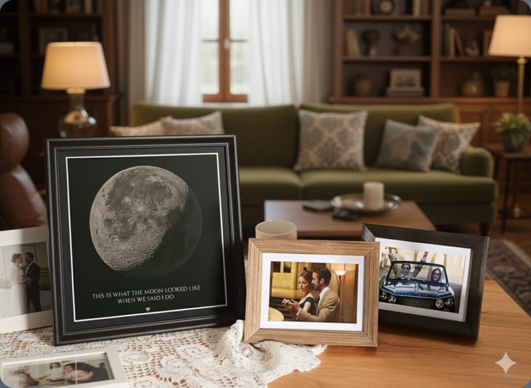We blend art, emotion, and design to create timeless keepsakes that speak from the heart. Whether it’s a moon phase print, a framed canvas, a personalized T-shirt, or a custom mug, every item is crafted with care and attention to detail, making each gift as unique as the person receiving it.
